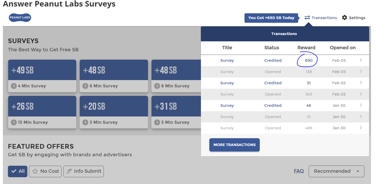 Wow! Just received 690 SB for a 15min PeanutLabsSurvey! Just wanted to share, this is a rare one for me!